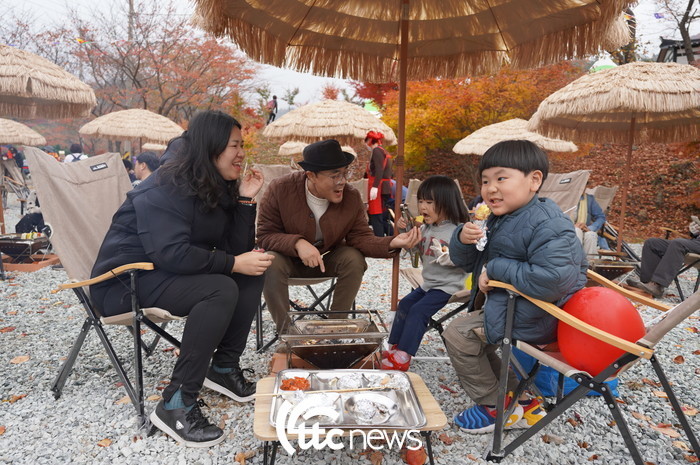 | ▲ 지난 11일부터‘오감만족 미식여행’을 주제로 두륜산 도립공원 일원에서 진행된 제4회 해남미남축제가 13일 성황리에 마무리 되었다. 사진은 추억의 구이터에서 한가족이 군고구마를 시식하고 있다. (사진=해남군 제공) |