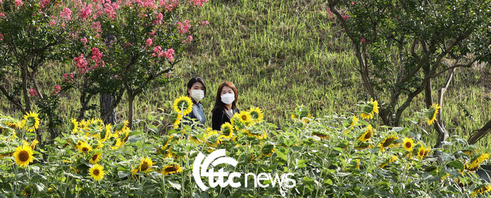 | ▲ 입추(立秋)를 이틀 앞둔 5일 전남 강진군 강진읍 강진 호수공원 광장 해바라기가 활짝 피어나 시민들을 맞고 있다.(사진=강진군 제공) |
