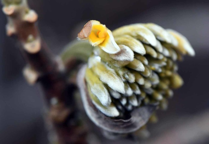 | ▲삼지닥나무꽃 팥꽃나무과의 중국원산 귀화식물로 제주도 등 남부지방에 분포한다. 개화기는 3~4월경이다 |