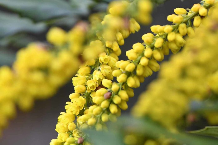 | ▲ 중뿔남천 매자나무과의 상록관목 원예재배종인 중뿔남천 가을부터 겨울까지 길게 개나리색의 노란꽃을 꽃차례로 피운다. |