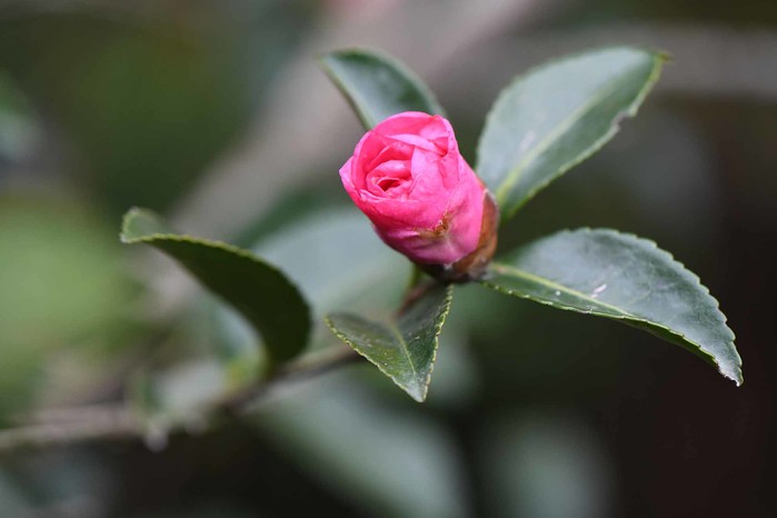 | ▲ 애기동백 줄기의 아랫부분이 갈라져 관목이 되는 것이 많으며, 수피는 회갈색이다. 잎은 바소꼴 또는 타원모양이고 가장자리에는 톱니가 있다. 겉은 진한 녹색이며 윤기가 흐르고 뒷면은 황녹색이다. 잎 뒷면의 맥위로는 잔털이 있다. 꽃잎은 5-7장이며 아랫부분에 붙어 있다. 수술은 많다. 동백나무와 달리 자방에는 털이 있으며 암술대가 세개로 갈라진다.일본원산의 상엽활엽소교목이다. 원예품종으로 붉은 색 또는 붉은 무늬가 있거나 겹꽃이 있다. 높이는 5~10m 정도 자란다. |