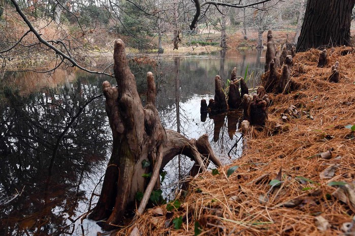 | ▲ 낙우송의 기근 숨을 쉬기위해 지상으로 올라온 나무뿌리인 기근(氣根)이 마치 종유석처럼 보인다. |