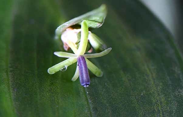 | ▲ 히포글로숨 루스쿠스의 꽃 3-4월에 피는 봄꽃이다. 잎모양으로 생긴 줄기에 꽃을 피워 마치 잎사귀를 뚫고 꽃이 핀것 처럼 보인다. |