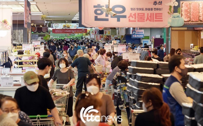 | ▲ 서울 서초구 소재 농협하나로마트 양재점이 추석장을 보러 나온 시민들로 붐빈다. |