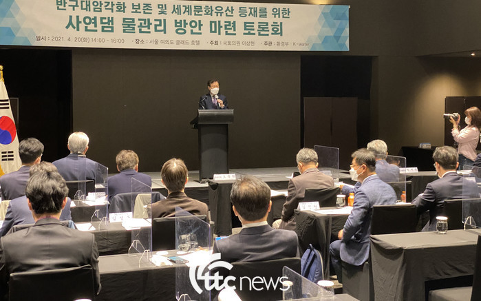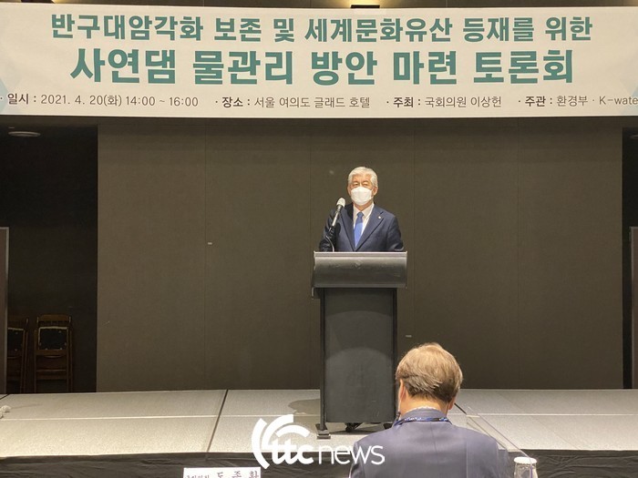 | ▲ 더불어민주당 이상헌 의원(울산 북구, 국회 문화체육관광위원회)이 주최하고 환경부와 K-water가 주관해 20일 서울 여의도 글래드 호텔에서 열린 ‘반구대 암각화 보존 및 세계 문화유산 등재를 위한 사연댐 물관리 방안 마련 토론회’가 개최되었다. |