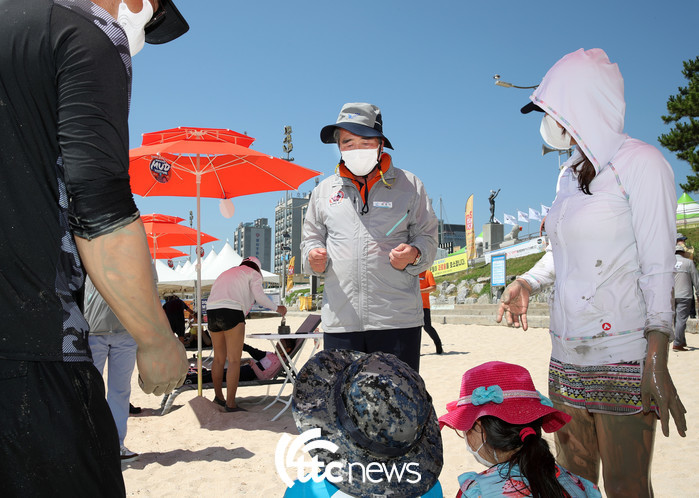 김동일 보령시장은 축제 첫 날 대천해수욕장 머드광장에 조성된 오프라인 축제장에 방문해 머드스프레이 샤워부스와 머드비치케어 현장 및 머드화장품 홍보관을 둘러봤다.