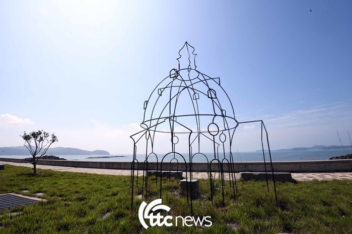 | ▲ MEMORIA URBANA(도시의 기억) 스페인 아티스트인 후안 가라이사발(Juan Garaizabal)이 2차 세계대전 중 파괴된 베를린 보헤미야 베들레헴 교회를 본래의 위치에 같은 크기와 형상을 이미지화해서 31m 높이로 ‘도시의 기억, 베를린’ 조형물을 세웠다. 이 교회는 귀츨라프가 수학한 베를린 선교학교를 설립한 교회이다. 귀츨라프의 선교정신을 계승하는 의미로 후안 가라이사발을 직접 초청하여 5m높이로 축소한 조형물을 고대도에 세웠다. |
