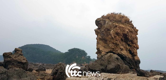 | ▲ 고대도 남쪽 끝머리에는 물이 빠지면 온갖 기암괴석이 모습을 드러낸다. 사진은 선바위(돛단여) |