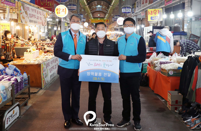 이날 박재현 사장과 노철민 노동조합위원장 등 한국수자원공사 노사는 상인들에게 마스크 2천5백 개를 전달해 생활 방역을 지원하고, 전통시장 이용 활성화에 대한 의견을 나눴다.