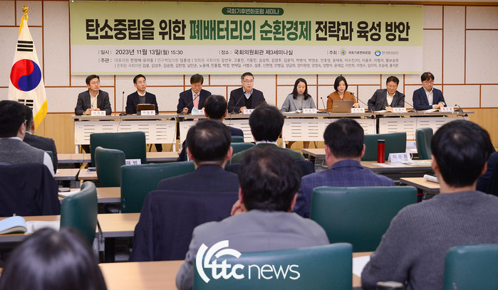 탄소중립을 위한 폐배터리의 순환경제 전략과 육성 방안에 대해 논의가 국회에서 마련되었다.