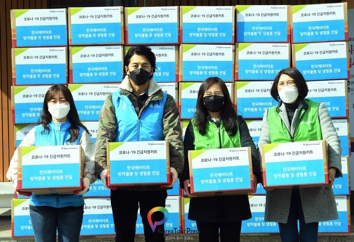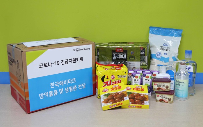 | ▲ 한국해비타트는 6일 코로나바이러스감염증-19 확산에 따라 방역용품 확보와 생활에 어려움을 겪고 있는 주거취약계층 200세대에 살균소독제와 위생용품, 비상식료품으로 구성된 긴급지원키트 200개를 전달했다. |