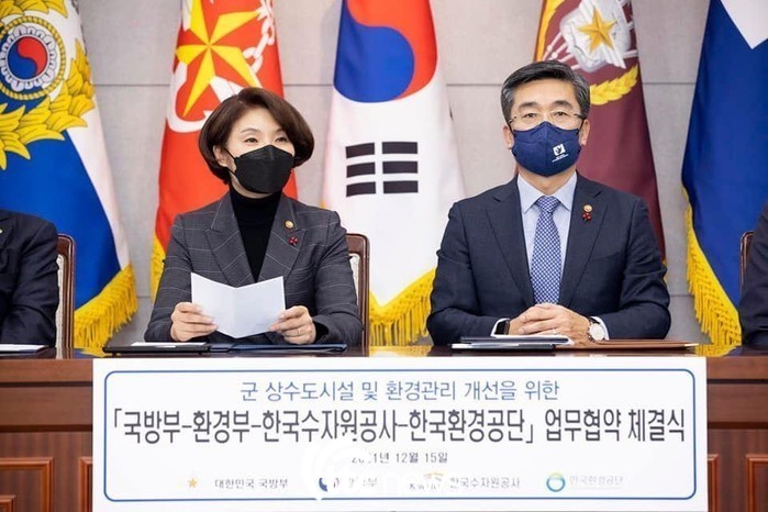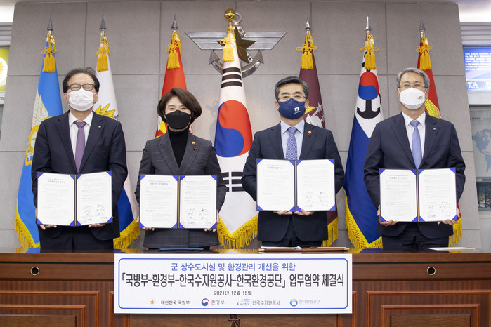 환경부와 국방부, 한국수자원공사, 한국환경공단과 15일 오후 국방부에서 군 상수도시설 및 환경관리 개선을 위한 업무협약을 체결했다.