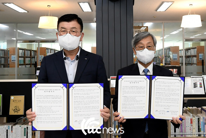 | ▲ 9일 김갑식(왼쪽) 한국수자원공사 경영부문 이사와 민경석 한국물학술단체연합회 회장이 ‘물 전문자료의 공유가치 창출과 공공 활용을 위한 업무협약’을 체결한 후 기념촬영하고 있다. 이날 협약은 물과 관련된 지식의 공유가치를 창출하고 대국민 활용을 도모하기 위해 양 기관이 보유한 물 전문자료를 공유하고 대국민 원문서비스를 제공하기 위해 저작재산권 등 무상이용에 대한 상호협력 내용을 담고 있다.(사진=한국수자원공사 제공) |
