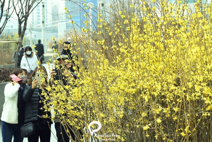 노란 꽃망울을 활짝 터트린 산수유를 한참이나 쳐다보던 김삼규(57, 중구 중림동) 씨는 “매일 이곳을 산책하는데 파란하늘아래 노란 꽃이 눈부시다. 멀리 남쪽지방까지 가지 않았는데 어느새 집 앞에 봄이 왔다”며 “봄꽃들이 활짝 피어나면 이땅에서 코로나19 공포가 사라지기를 바란다”고 말했다.