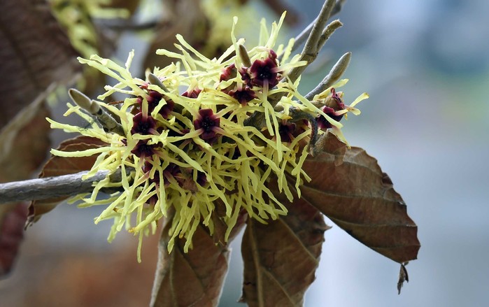 | ▲ 풍년화 Hamamelis japonica Siebold & Zucc 일본 원산으로 중부 이남에서 심어 기르는 낙엽 떨기나무로 꽃은 3-4월에 잎보다 먼저 잎겨드랑이에서 여러 개가 피며 노란색이다. |