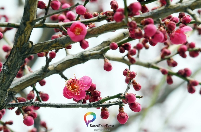 | ▲ 장미과의 홍매는 원예품종으로 개량된 식물로 전국 각지에 분포해 봄소식을 전한다. |