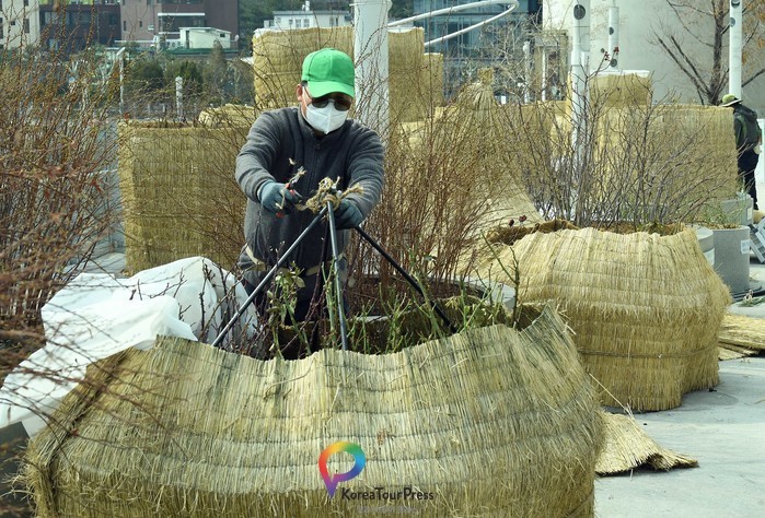 | ▲ 송광납판화라고 부르기도 하는 히어리는 지리산 일대에 분포하는 한국 특산종이다. 서울로 7017 서부역 부근에서 봄소식을 전하고 있다. |