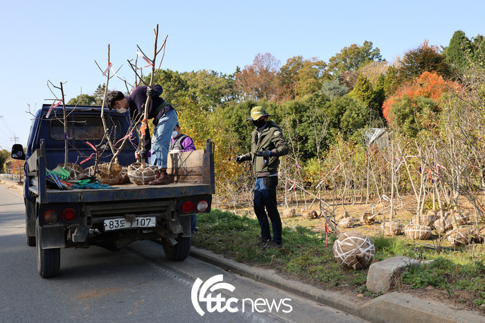 천리포수목원은 지난 17일 천리포 마을에서 박준서 소원면장과 목련 나무 심기 행사를 진행하고 모항초등학교를 방문해 나무 가꾸기의 중요성을 설명했다.