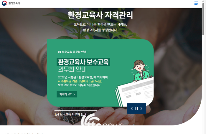 ‘환경교육사’는 환경교육 과정을 기획·진행·분석·평가를 수행하는 국가전문자격으로, 취득 후 환경교육 관련 단체·기관·학교 등 사회환경교육기관으로 진출할 수 있다.