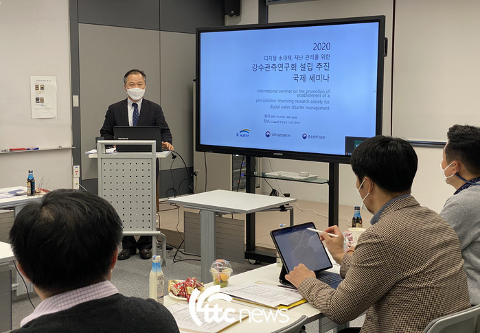 | ▲ 디지털 수재해 재난관리를 위한 강수관측연구회 설립 추진 국제세미나가 3일 대전 유성구 K-water연구원 스타트업허브에서 개최되었다. 이날 세미나는 코로나 19 확산에 따라 발표자와 토론자를 제외한 참석자들은 온라인으로 연결해 진행했다. |