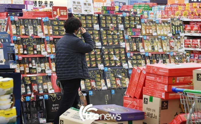 | ▲ 설명절을 앞두고 한 시민이 쇼핑몰의 명절선물세트 코너를 둘러보고 있다. 선물세트의 경우 과대포장과 개별포장 이종복합물 구성되어 있어 분류와 재활용에 많은 어려움이 있다.(티티씨뉴스 자료사진) |