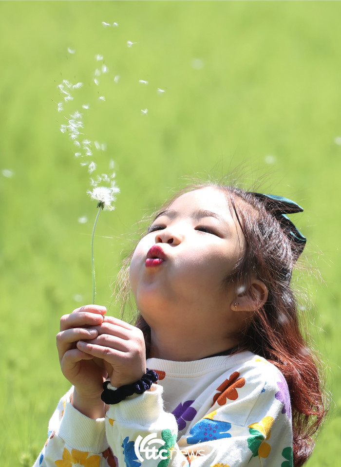 | ▲ 3일 경남 함양군 상림공원을 찾은 어린이가 민들레 홀씨를 불어 날리고 있다..(사진=함양군 김용만 주무관 제공) |