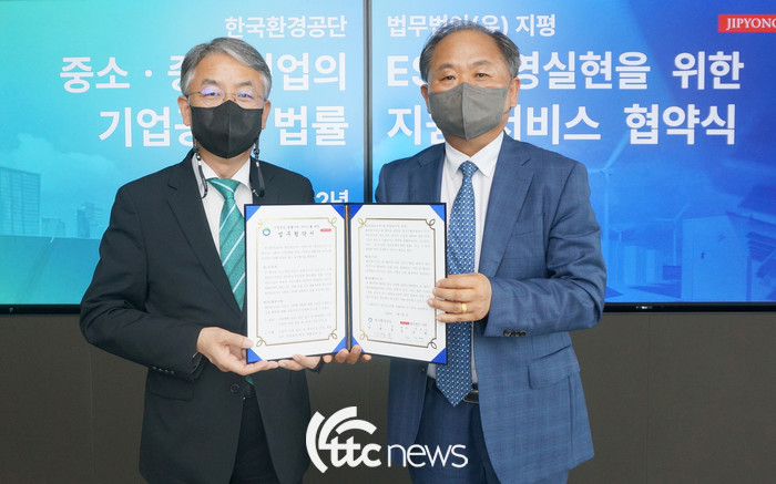 한국환경공단은 28일 법무법인(유)지평(대표변호사 임성택)과 환경관련 중소‧중견기업의 ESG 경영 활성화 지원을 위한 “기업공감 법률지원 서비스” 추진을 위해 업무협약을 체결했다.