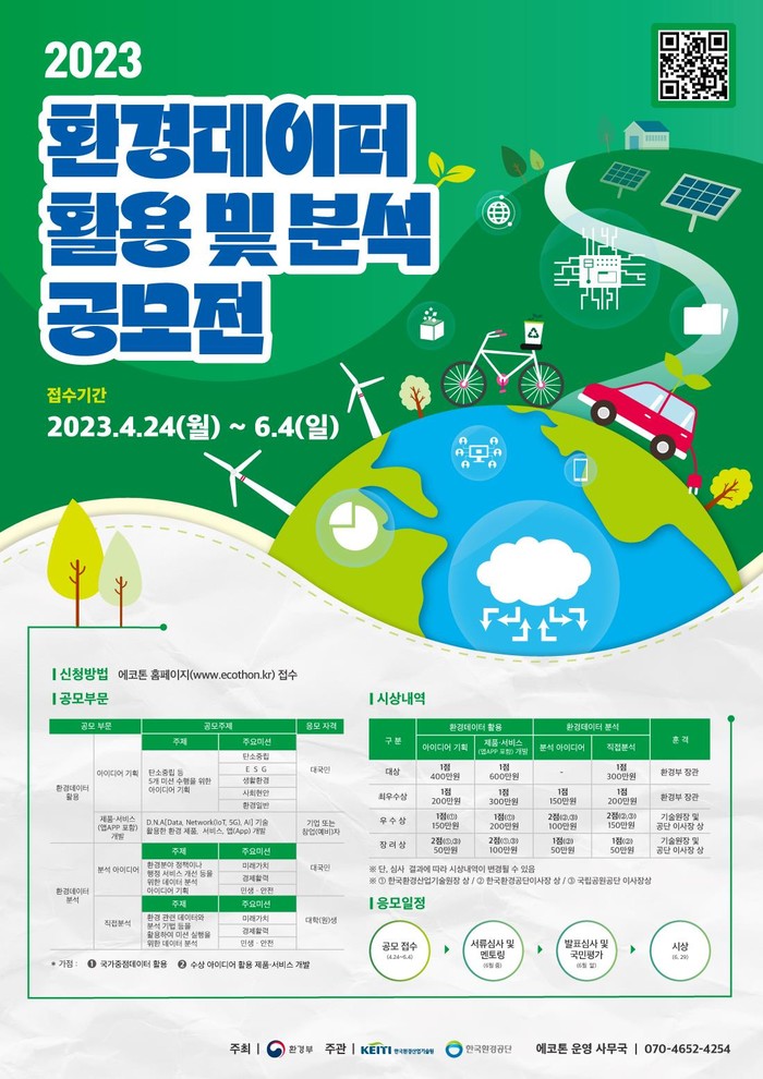 참여를 희망하는 국민은 4월 24일부터 6월 4일까지 공모전 누리집(www.ecothon.kr)을 통해 아이디어 기획서 또는 분석 결과보고서를 제출하면 된다.
