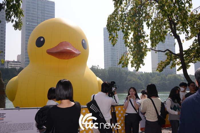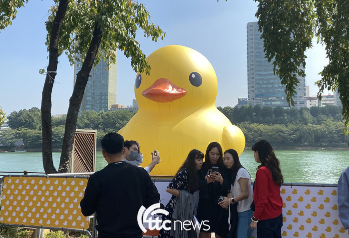 인근의 직장에 근무하는 김솔(27, 성북구)는 “점심 식사후 직장 언니와 산보 나왔는데 노란 고무 오리가 석촌호수에 나타나 반갑게 사진을 찍었다”면서, “어린시절 욕조에서 가지고 놀단 그 오리같아 반갑다”며 활짝 웃었다.