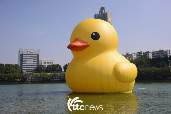 | ▲ 높이 18m, 가로 19m, 세로 23m 크기의 대형 벌룬 러버덕은 10월 31일까지 석촌호수 동호에서 관람객과 만난다. |