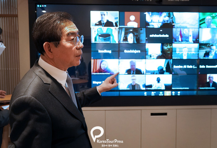 박원순 시장은 27일 밤 세계 주요도시 시장들과 ‘코로나19 공동대응 화상회의’를 갖고, 코로나19 선제적 대응을 위한 서울시의 방역 경험과 노하우를 소개했다.