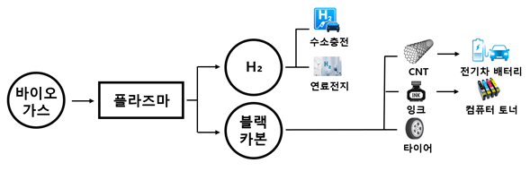 전기에너지를 활용하여 고분자화합물을 저분자 화합물로 분해하는 플라즈마 기술은 다른 기술에 비해 수소 생산 과정에서 온실가스 발생을 최소화하고, 고체탄소를 회수할 수 있다는 장점이 있다. 회수한 고체탄소는 페인트·연료전지 원료 등으로 재활용이 가능하다.