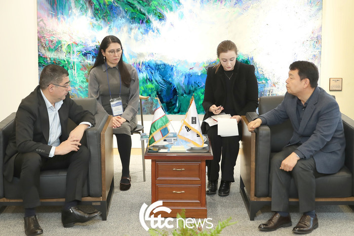 한국수자원공사(K-water) 윤석대 사장은 14일 대전시 대덕구 본사에서 딜쇼드 아지모프(Dilshod Azimov) 우즈베키스탄 상하수도공사(Uzsuvtaminot) 사장과 만나 우즈베키스탄 물관리 시설 현대화와 물문제 해결을 위한 교류 확대 필요성에 대해 의견을 나누고 긴밀한 협력을 이어가기로 뜻을 모았다.