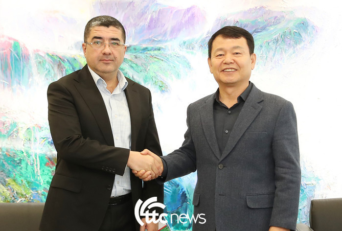 | ▲ 한국수자원공사 윤석대 사장(오른쪽)은 14일 오전 대전시 대덕구 본사에서 딜쇼드 아지모프 우즈베키스탄 상하수도공사 사장과 만나 우즈베키스탄 물 문제 해결을 위한 지식 및 기술교류 확대 필요에 대한 의견을 교환하고 있다.(사진=한국수자원공사 제공) |