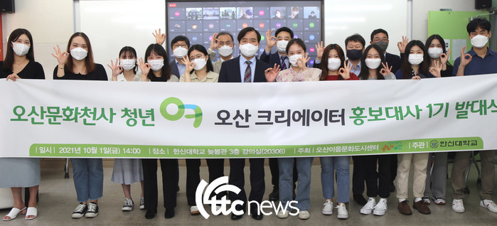 한신대학교(총장 강성영)와 오산이음문화도시센터(센터장 유종대)는 지난 1일 한신대 늦봄관에서 ‘오산문화천사 청년 ㅇㅋ(오산크리에이터) 홍보대사 1기 발대식’을 가졌다고 밝혔다.