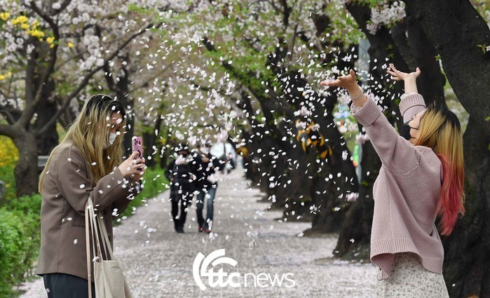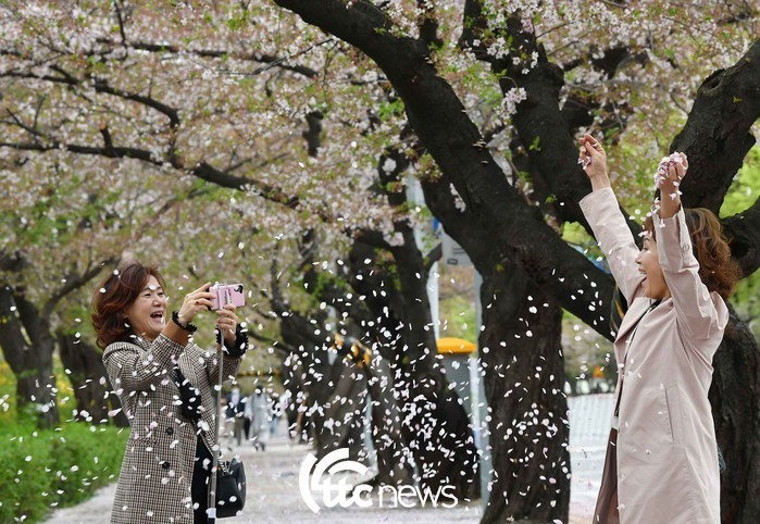 대학 친구와 함께 흰 눈처럼 내리는 벚꽃 길을 찾아 나선 권지은(21, 대학생)은 “벚꽃이 대부분 떨어져 아쉽기도 하지만 길가에 쌓인 벚꽃 잎을 모아 하늘 위로 날리는 재미가 쏠쏠하다”면서 서로 사진 촬영하기에 바쁘다.