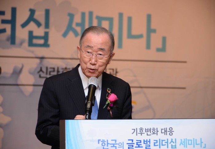 | ▲ 반기문 글로벌녹색성장연구소(GGGI) 의장이 28일 오후 서울 중구 소재 신라호텔에서 열린 ‘기후변화 대응을 위한 한국의 국제 리더십 세미나’에 참석 기조연설을 하고 있다. |