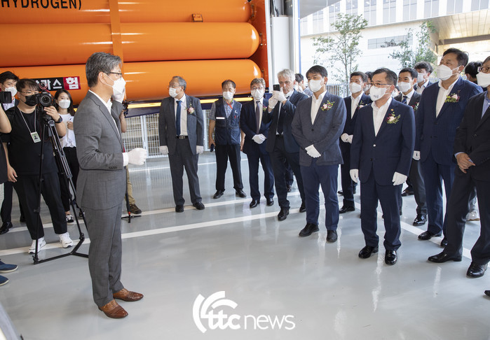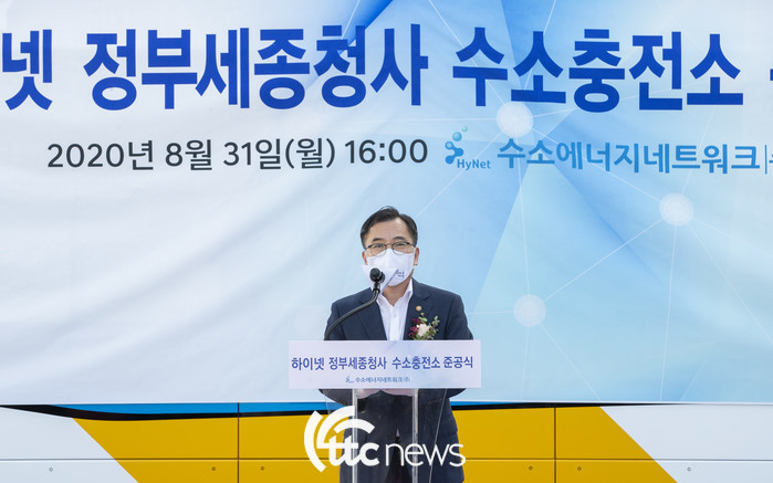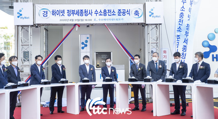 환경부에 따르면 한국가스공사, 현대자동차 등 11개 기업이 참여하는 수소충전소 특수목적법인(SPC)인 수소에너지네트워크(HyNet)는 31일 '정부세종청사 수소충전소 준공식'을 개최했다.