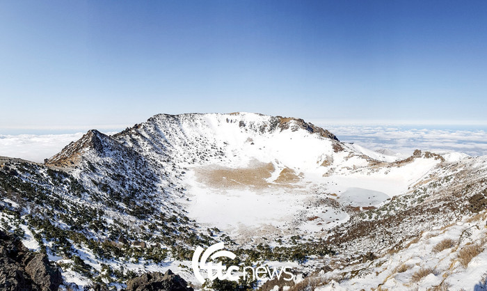 | ▲ 제주관광공사는 16일 겨울 제주에서 즐기기 좋은 “제주 겨울의 색”을 테마로 ‘2022년 겨울 놓치지 말아야 할 제주관광 10선 <총천연색으로 빛나는, 제주 겨울의 품격>’을 발표했다. 흰 눈이 쌓인 한라산 정상의 백롬담이 더욱 신비롭게 보인다.(사진=제주관광공사 제공) |