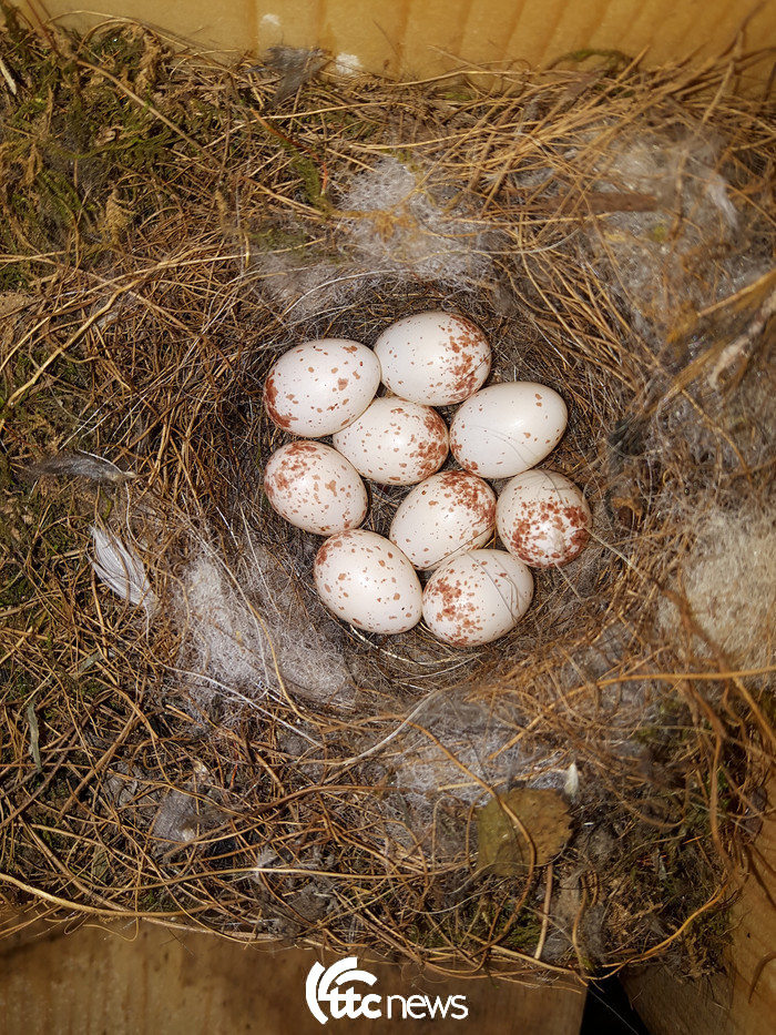 | ▲ 인공새집에 박새가 알을 낳았다(사진=그린새 서정화 대표 제공) |