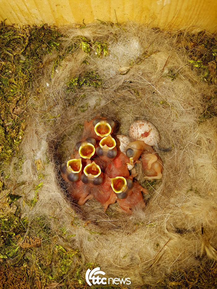 | ▲ 인공새집에서 부화한 박새(사진=그린새 서정화 대표 제공) |