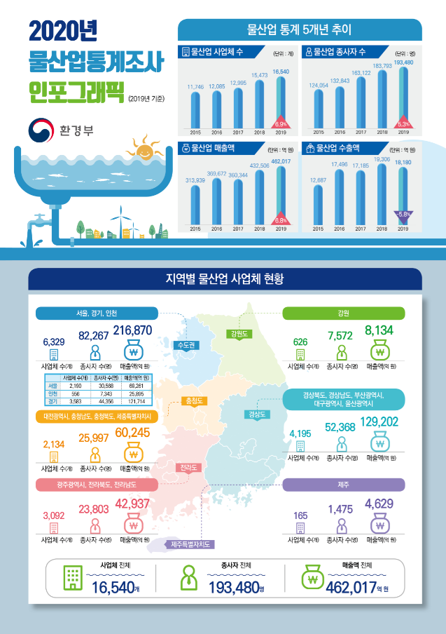 물산업 분야 종사자 수는 전년 대비 9,687명이 증가(5.3% 증가)한 총 19만 3,480명으로 조사됐다.