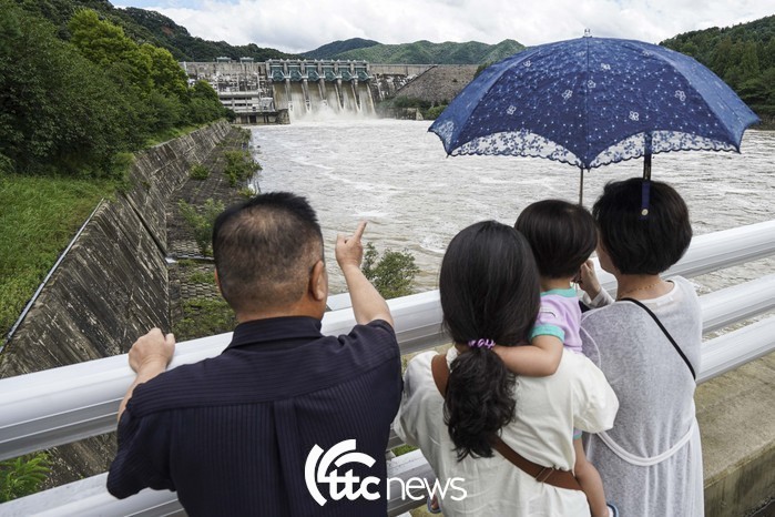 | ▲18일 오후 한 가족이 대청댐 하류 교량위에서 홍수조절 방류중인 대청댐을 바라보고 있다. 대청댐이 없었다면 15일 새벽 초당 5178㎥의 홍수가 하류로 추가로 내려갔을 것으로 분석된다. 순간 최대 홍수의 80%를 댐으로 감량한 셈이다. |