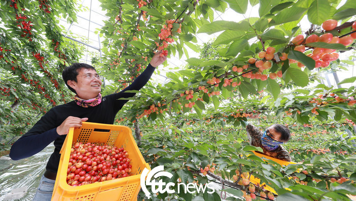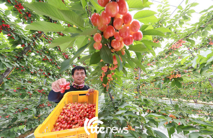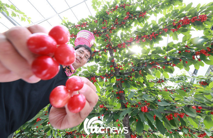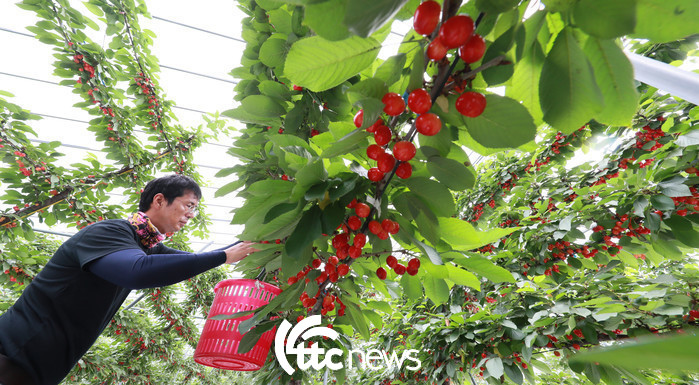 17일 경남 함양군 함양읍 가재골 체리농장에서 박대진씨가 새콤달콤한 맛을 자랑하는 여름과일 체리를 수확하고 있다.