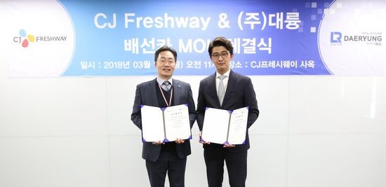 CJ그룹의 식자재 유통 및 단체급식 전문기업 CJ프레시웨이(대표이사 문종석)가 16일(금) 대륭과 병원 배선카 개발, 생산 및 브랜드 출시에 관한 업무협약을 체결했다.