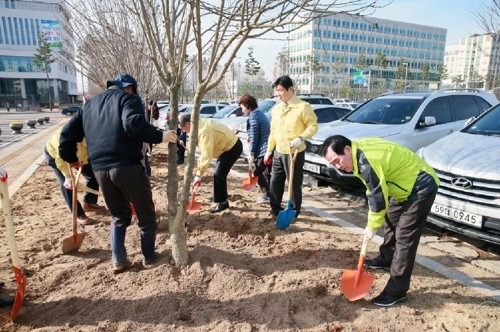 20그루는 본청 현관 앞 정면에 가로숫길을 조성했고 80그루는 무궁화동산 조성과 청사 공간마다 조경에 사용했다.