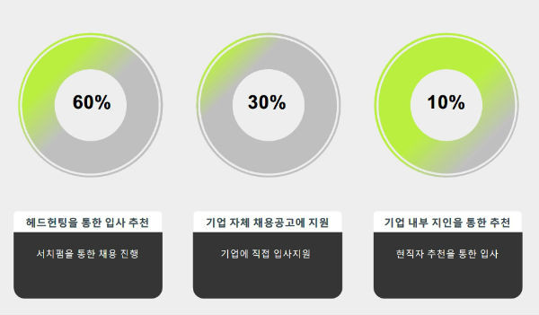 이러한 경우에 지원자는 기업 자체 채용공고를 통하기 보다는 서치펌의 헤드헌터를 통하여 기업에 채용을 진행한다는 것을 선호했다.