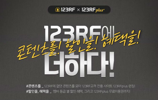 123RF플러스는 빠르게 변화하는 국내 마케팅 환경을 고려하여 유행하는 최신 디자인소스 및 템플릿을 제공하며 국내 테마, 국내 사물, 국내 모델이 등장하는 다양한 한국적 콘텐츠를 제공한다.