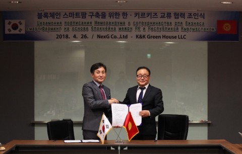 넥스지가 중앙아시아 키르기스스탄의 ‘K&K GREEN HOUSE LLC.(이하 K&K)’와 블록체인 스마트팜 구축을 위한 양해각서(MOU)를 체결했다고 27일 밝혔다.