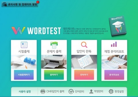 이번에 발표된 ‘워드테스트’ 서비스는 가장 빠르고 효과적인 단어테스트를 표방하고 각 교육기관의 교육과정에 맞춘 단어장, 단어테스트용 어휘를 특허기술로 구현된 SMART OMR을 이용, 한 학급이 단 10분 이내에 100개 단어의 테스트와 채점이 실시간으로 이루어지는 획기적인 서비스를 구현했다.